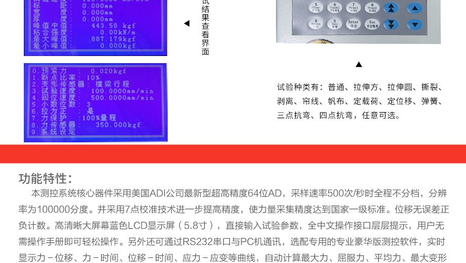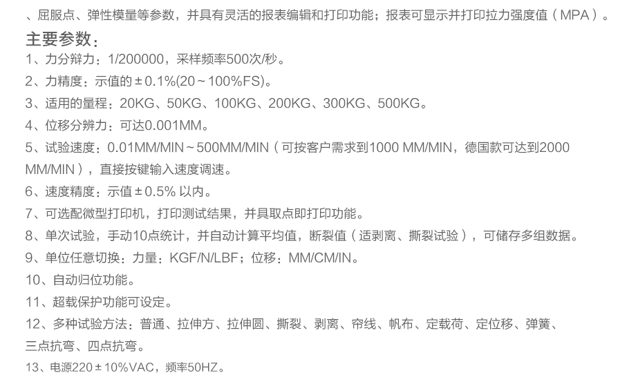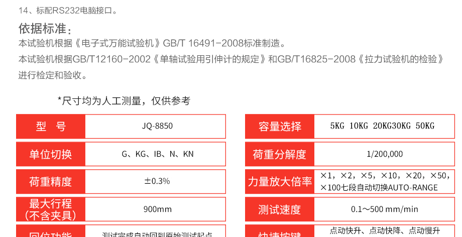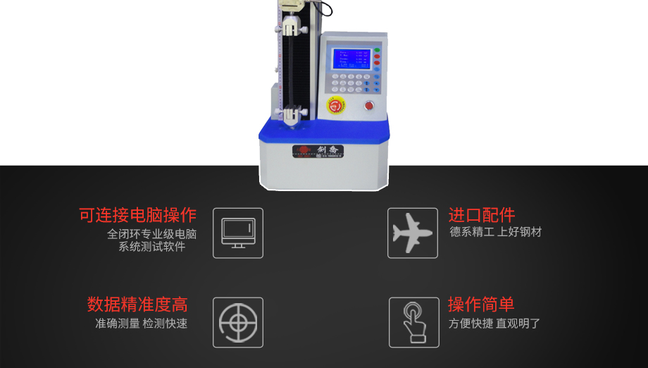 產(chǎn)品型號:JQ-8850 品牌:劍 喬 用途:本系列機(jī)廣泛用于各類薄膜、五金、橡膠料、紡織、建材、絕緣體、電線、電纜、端子等各類材料。測試其拉伸、撕裂、穿刺、剝離、抗壓、彎曲、抗剪切、定荷重、定位移、三點(diǎn)抗折